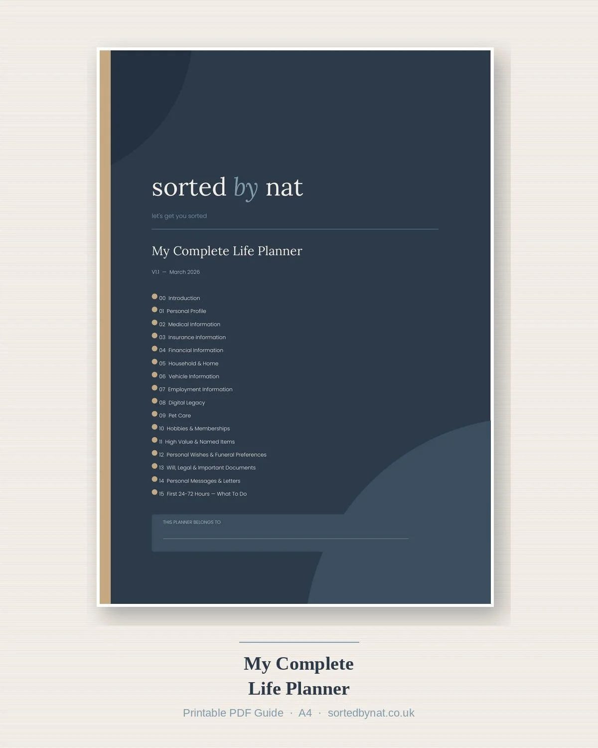 Everything the people who matter to you need to know. In one place. I built this planner during a month I spent in hospital after emergency surgery. Lying there with too much time to think, I kept coming back to the same question: if I didn’t wake up tomorrow, would the people I love know where to start?